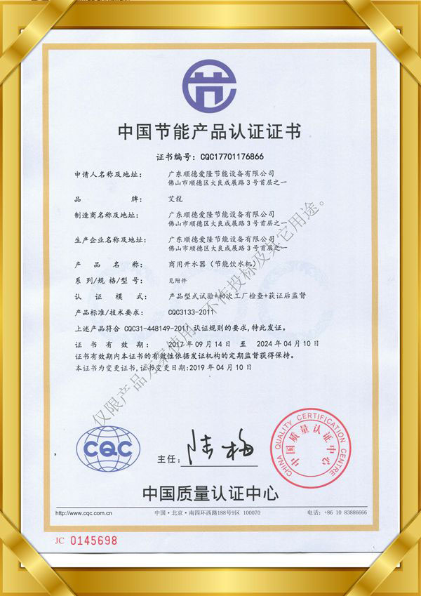 中國節能產品認證證書